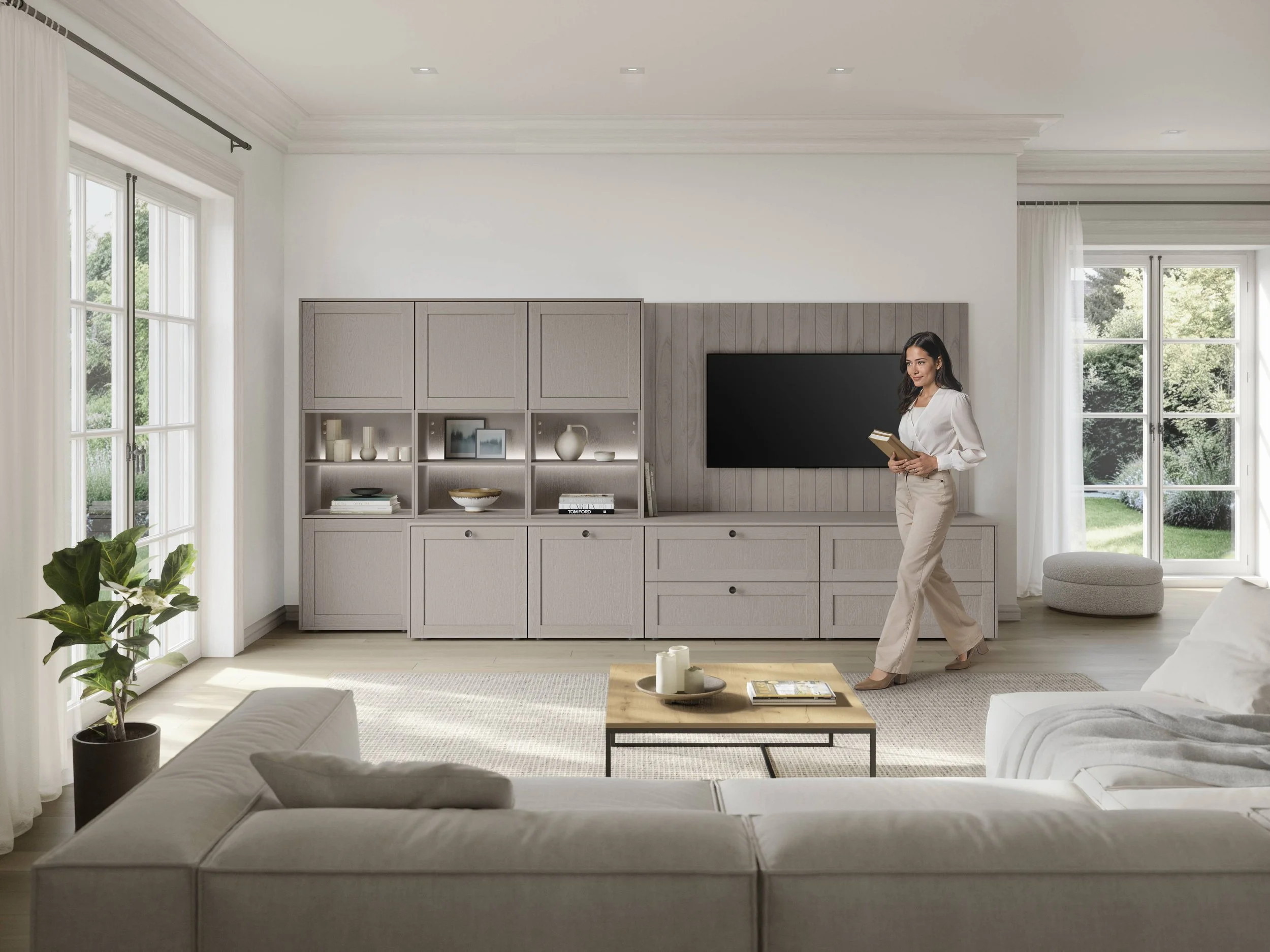 Vardagsrummet är hemmets hjärta – en plats för vila, samtal och gemenskap. Med Noblessas måttanpassade lösningar får du stilen förvaring, harmoniska materialval och genomtänkt funktion i ett och samma uttryck. Skapa en miljö som bjuder in till både lugna stunder och levande liv.